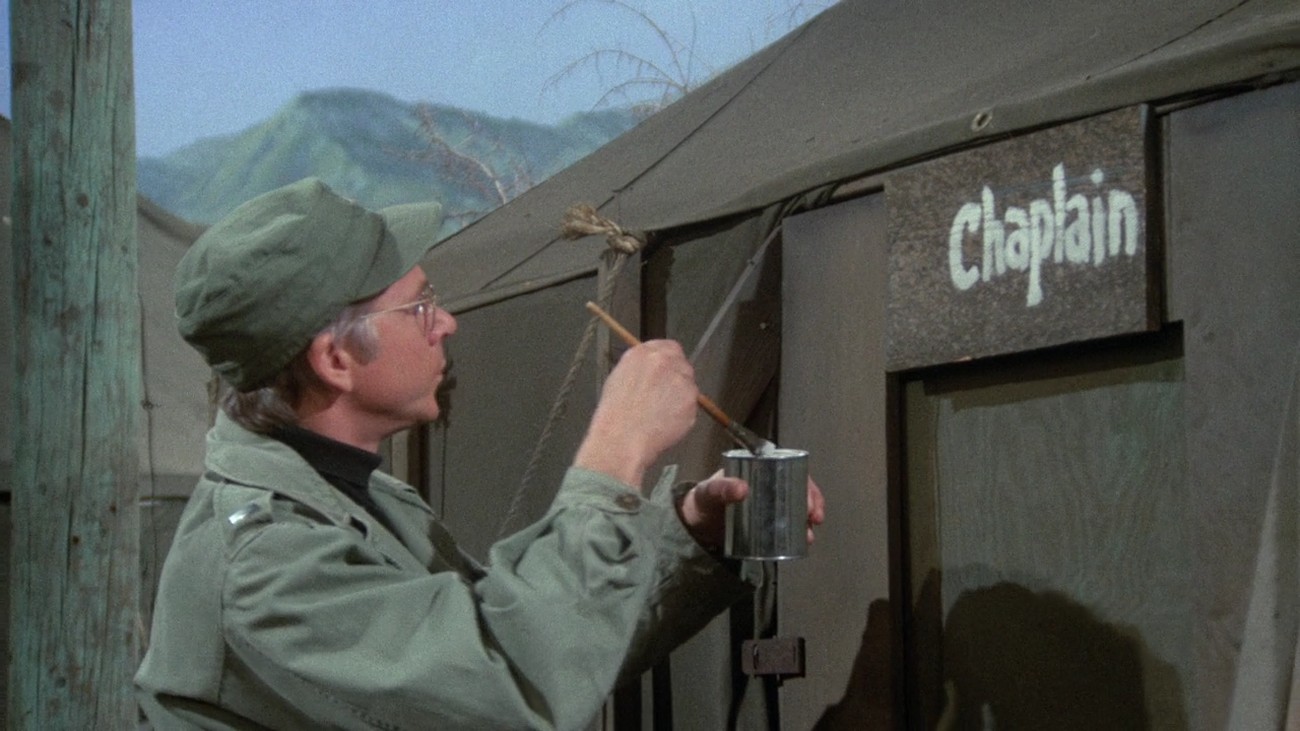 Father Mulcahy ist immer für alle da. Okay, eine richtige Kapelle gibt es nicht. Aber zumindest sein Zelt richtet er sich schön her.
